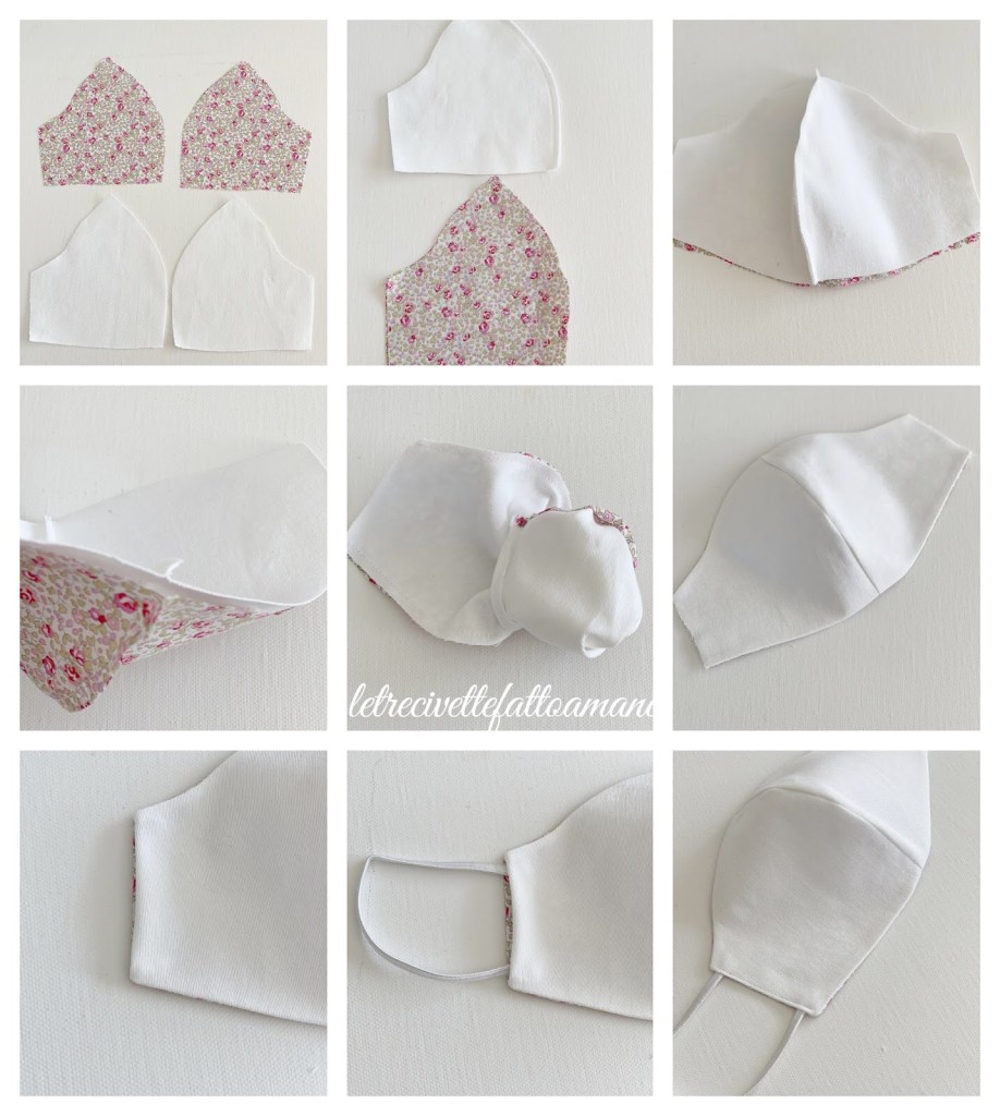 - Inserire due elastici per le orecchie con colore abbinato al tessuto.