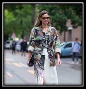 This is a trend born in warm and used at the and of 60 years by the women that wears mimetic uniforms and demonstrate for the peace.